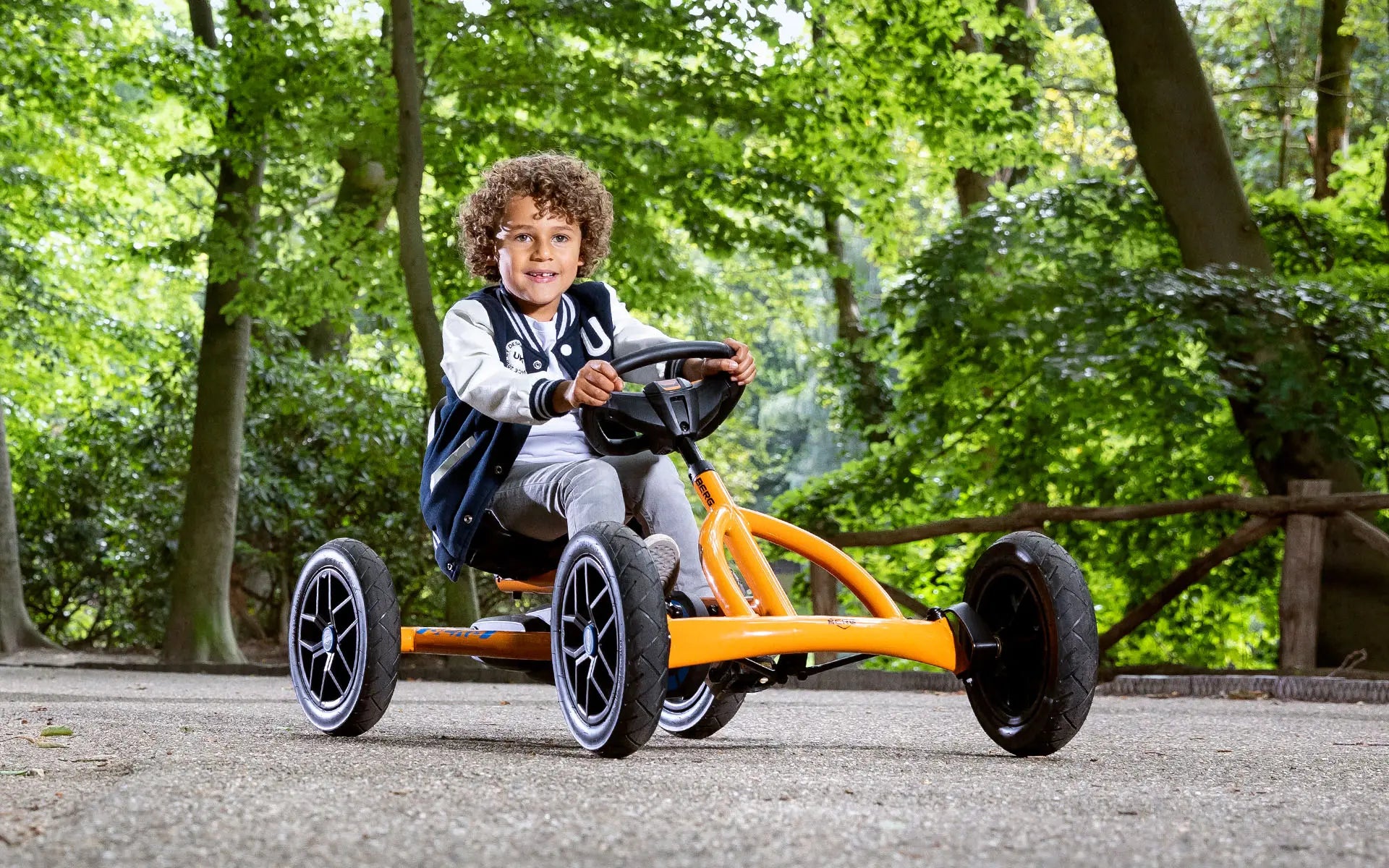Energetic, fun, and easy to ride—this go-kart adds color and excitement to every outing.