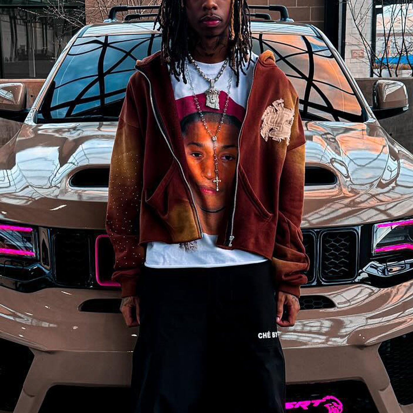Casual Street Retro Patch Embroidered Zipper Hoodie