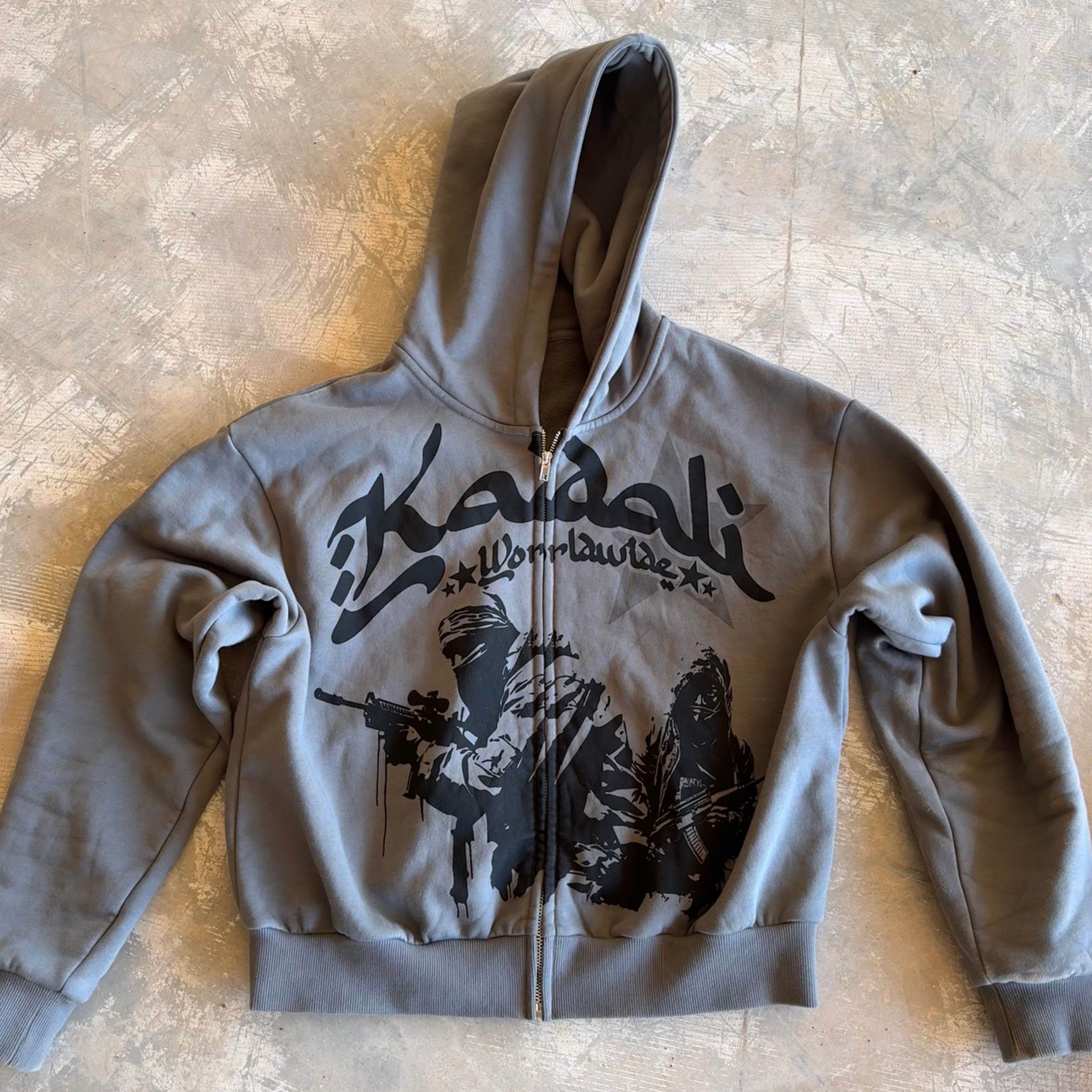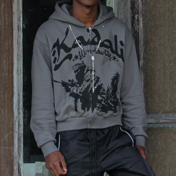 Casual Wars Print Long Sleeve Zipper Hoodies
