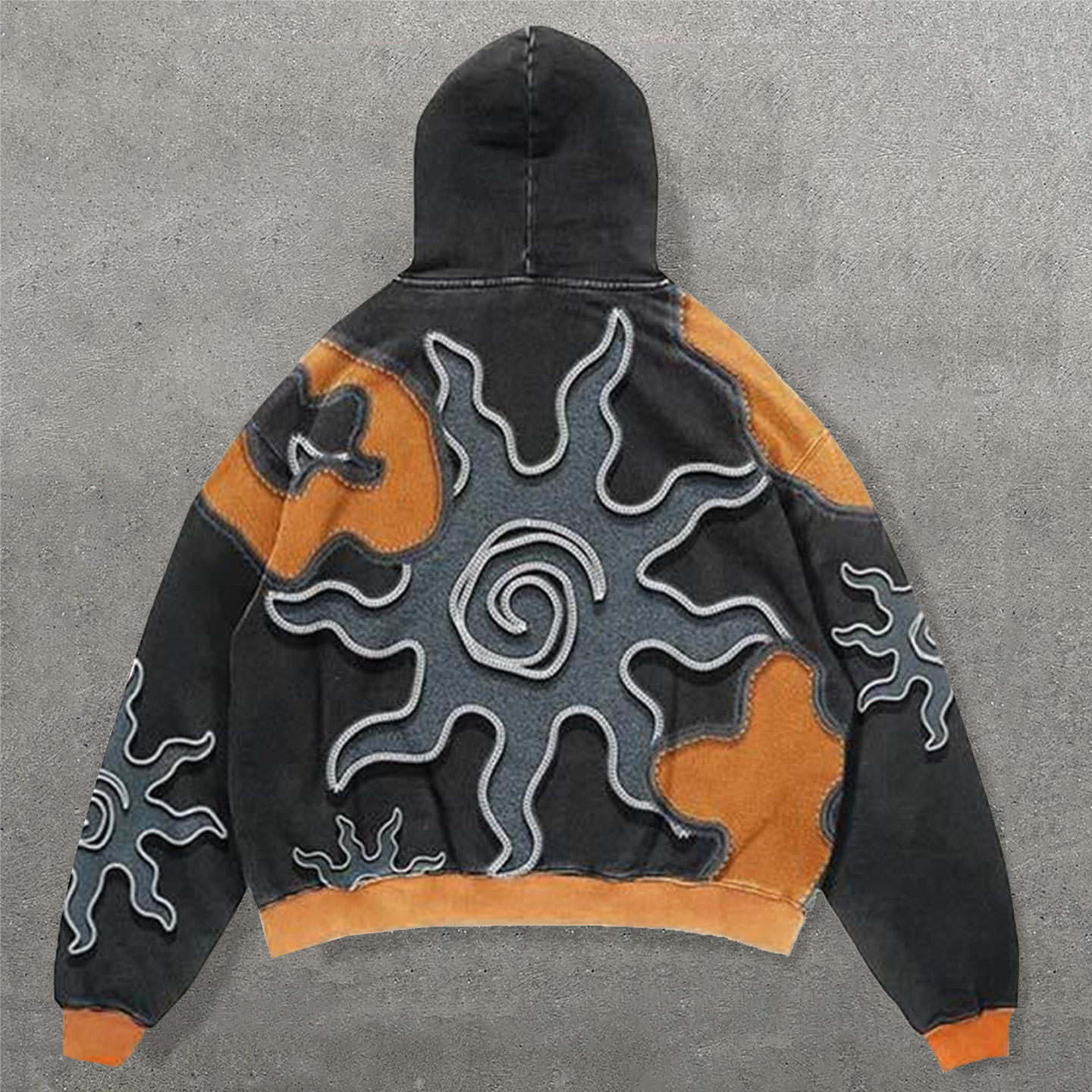 Chunk Contrast Color Faux Decal Print Long Sleeve Hoodies