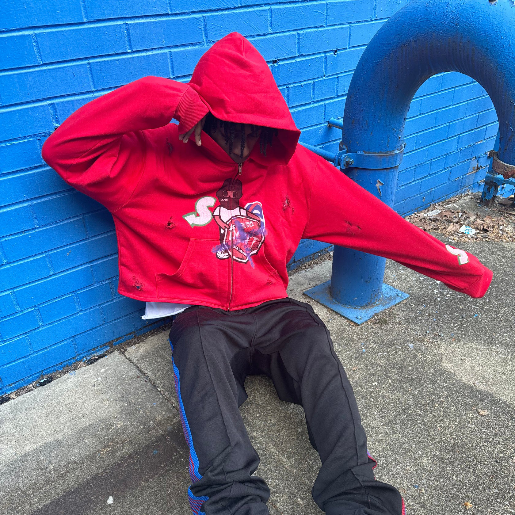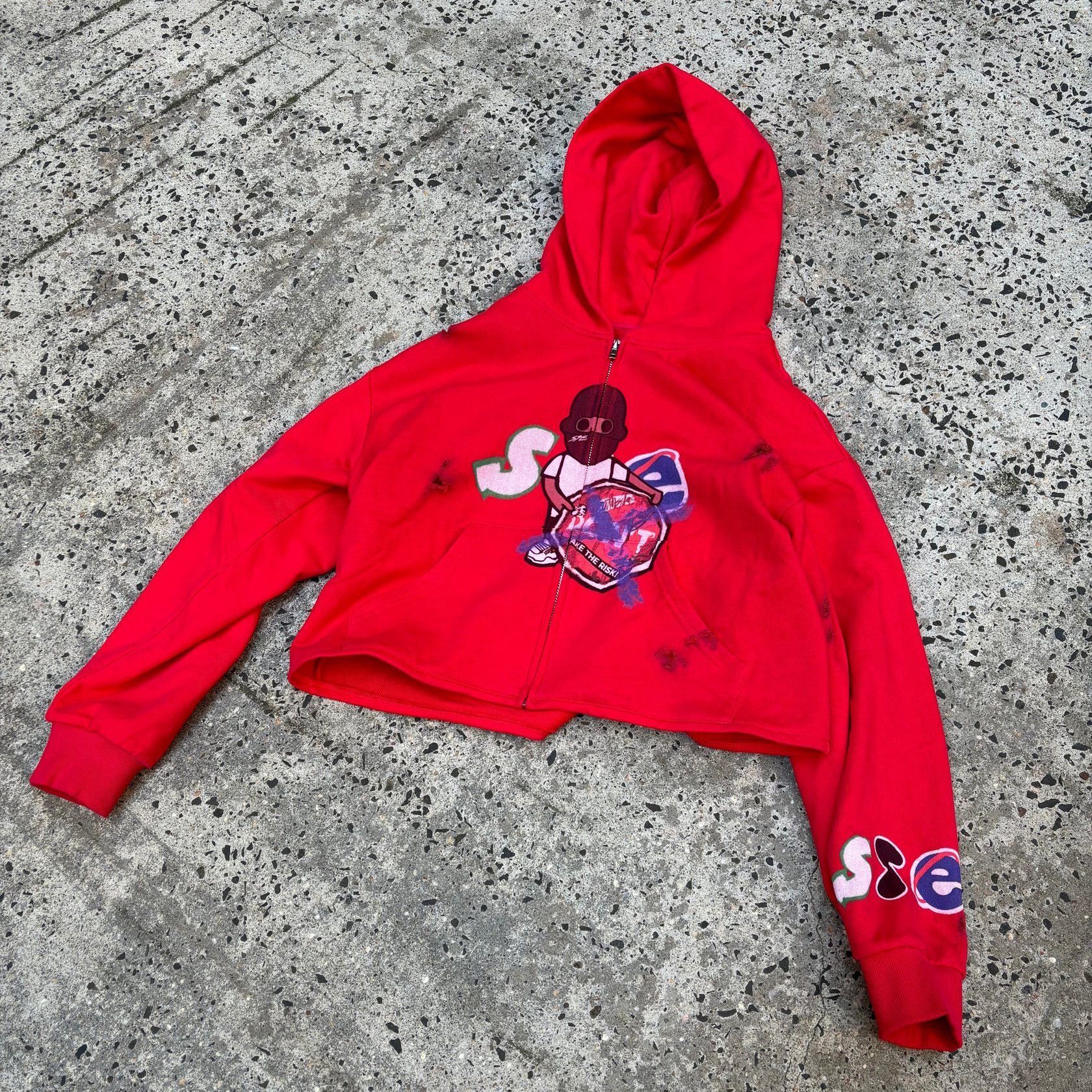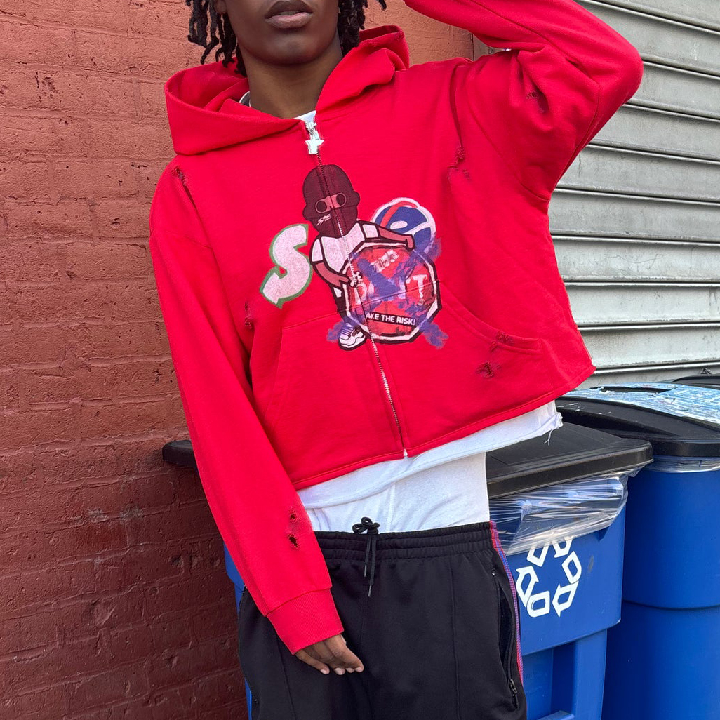 Cropped Solid Distressed Zip Hoodie