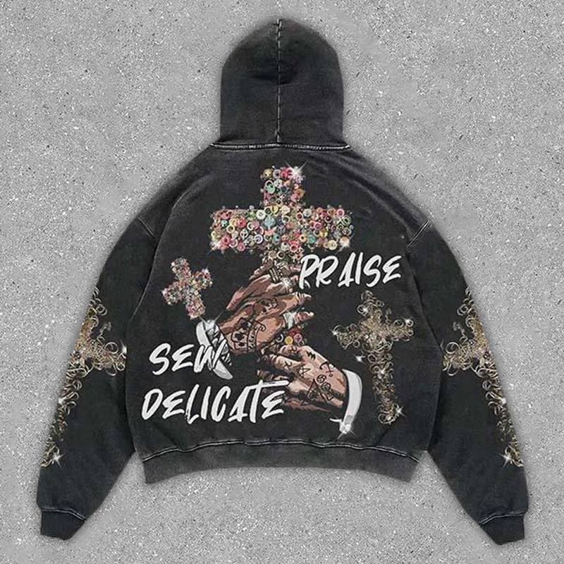 Cross necklace print hoodie