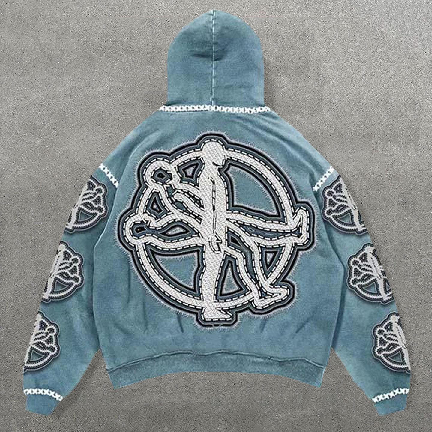 Diamond Faux Decal Print Long Sleeve Hoodies