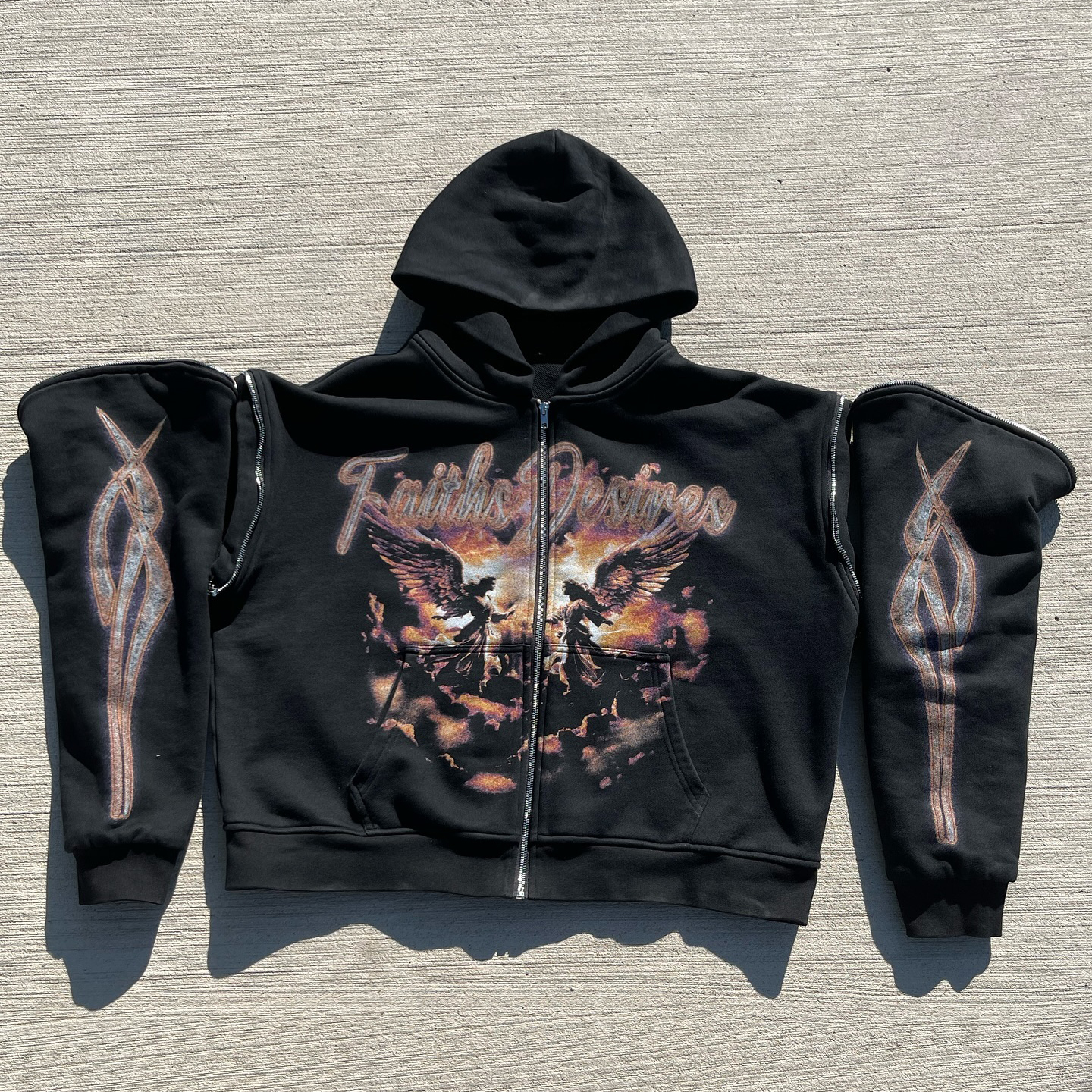 Faith Desires Print Removable Long Sleeve Zipper Hoodies