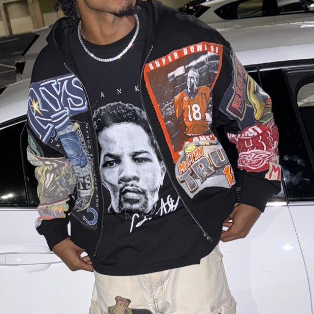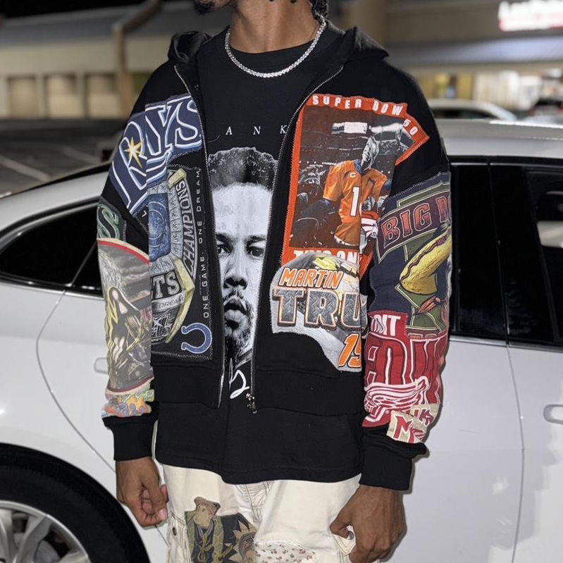 Football Player Print Long Sleeve Zipper Hoodies