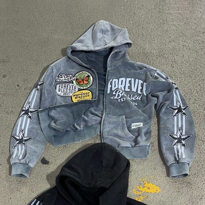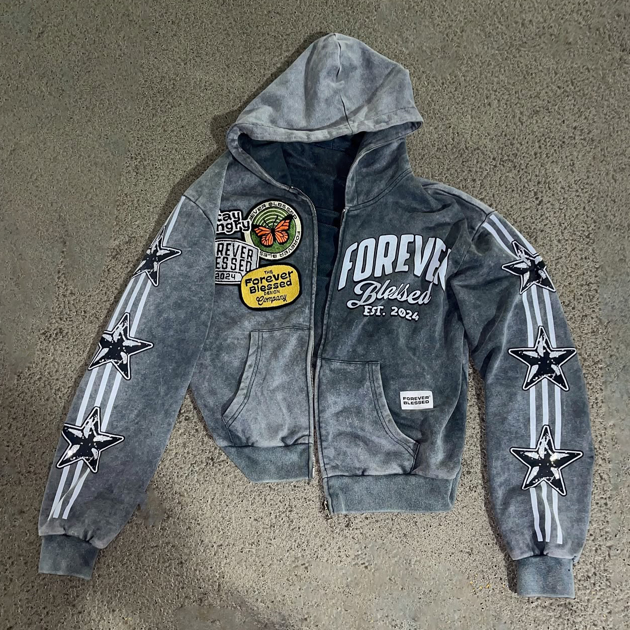 Forever Blessed Print Long Sleeve Zipper Hoodies