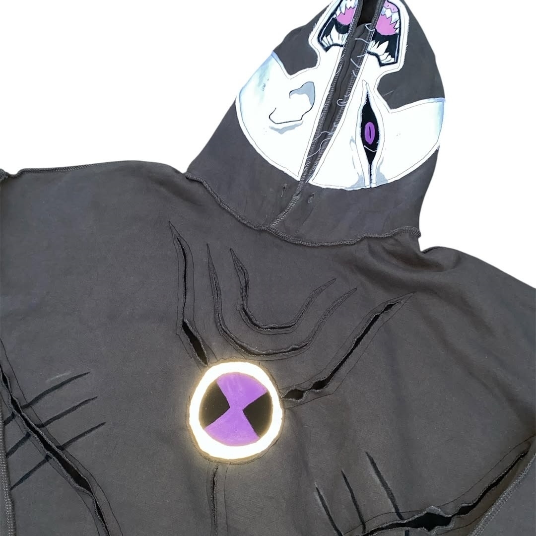 Asymmetrical Aesthetic: The front and back are designed with contrasting shadow tones and graphic distortion, echoing Ghost Freak’s morphing silhouette.