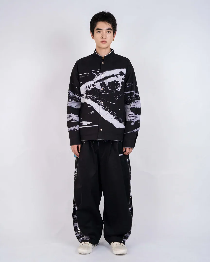 The OKARUN REVERSIBLE TRANSFORMATION JACKET is crafted in 100% cotton with a fully reversible design, switch between a clean style or a bold graphic print. Pairs perfectly with the Transformation Pants for a complete fit.