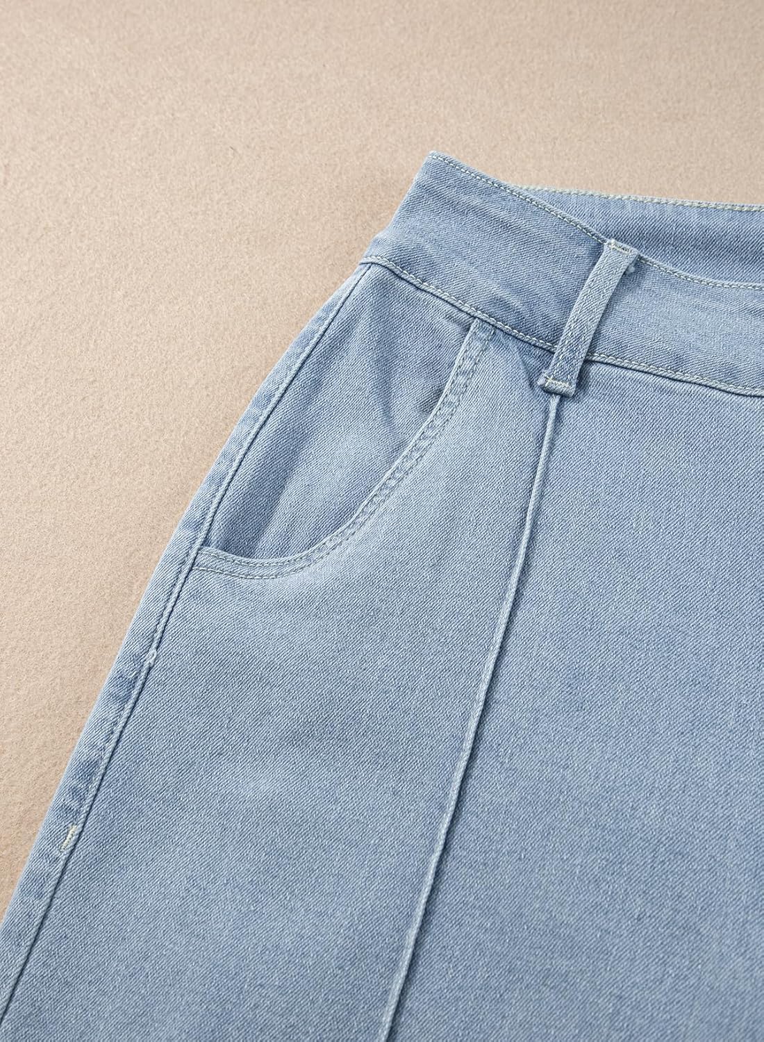 - Features: Fashion jean features wide leg, high waisted, four pockets, pinched seams, loose fit, double-breasted button and zipper fly closure and full length design. The unique pinched seams detail adds a touch of individuality