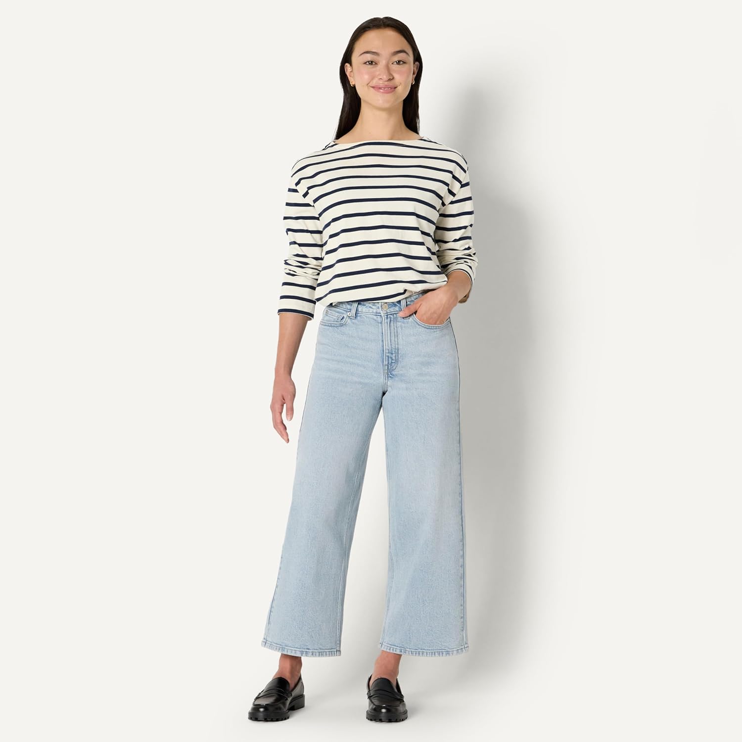 - HIGH-RISE WIDE LEG CROP: Close fit through waist and hip, gradually widens at the thigh down to leg opening. Cropped, hits at the ankle. High rise, sits on or above the natural waist