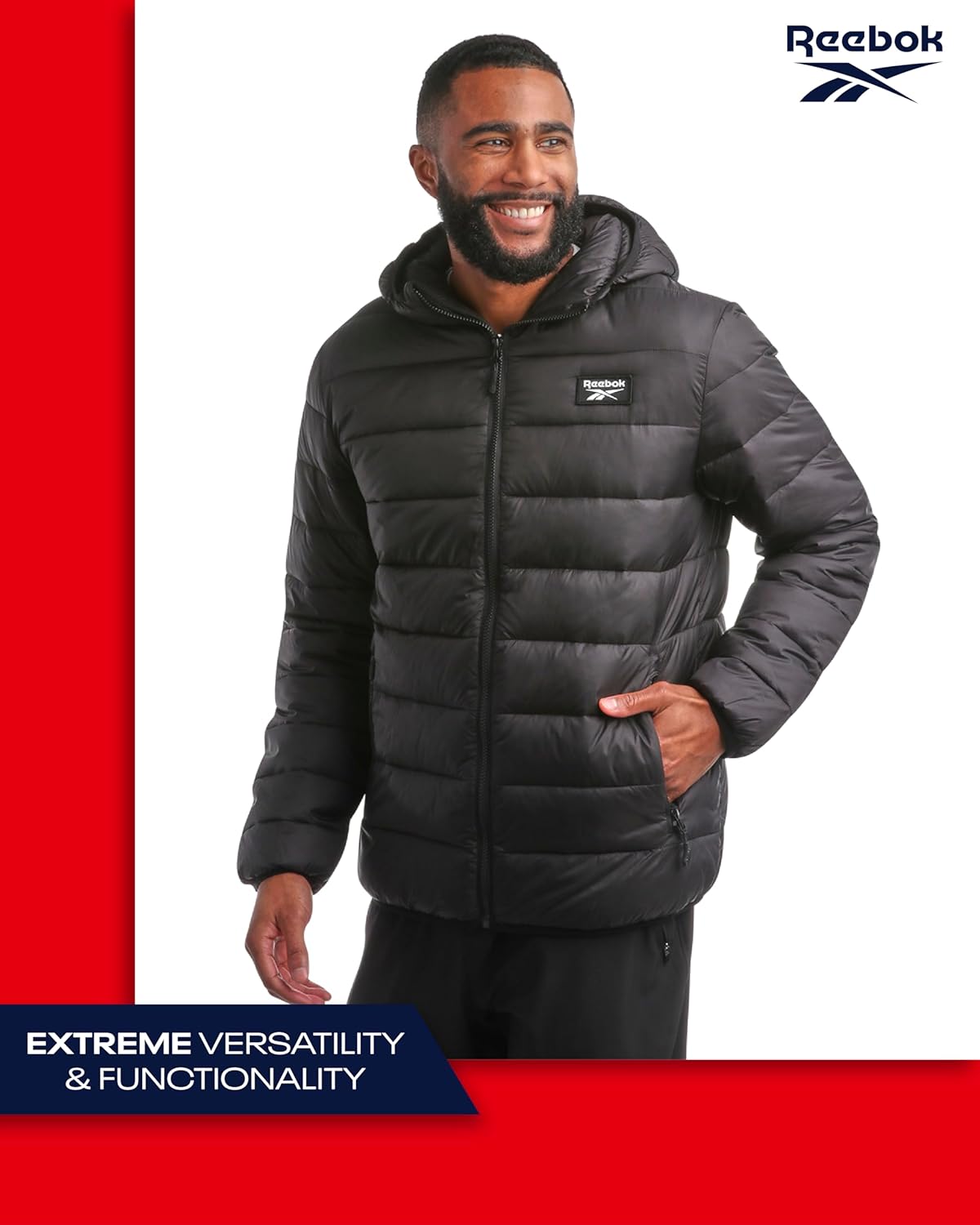 Reebok Mens Puffer Jacket – Lightweight Quilted Warm Glacier Shield Hooded Mens Winter Coats – Cozy Insulated Jackets for Men