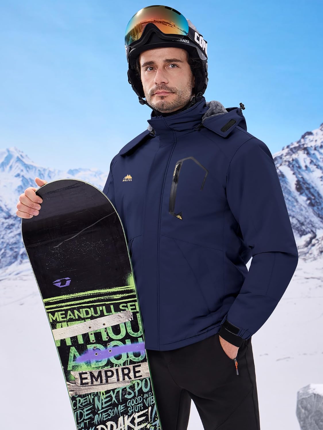 WULFUL Men’s Ski Jackets Warm Winter Snow Windbreaker Resistant Snowboard Fleece Coat Mountain Waterproof Parka with Hood