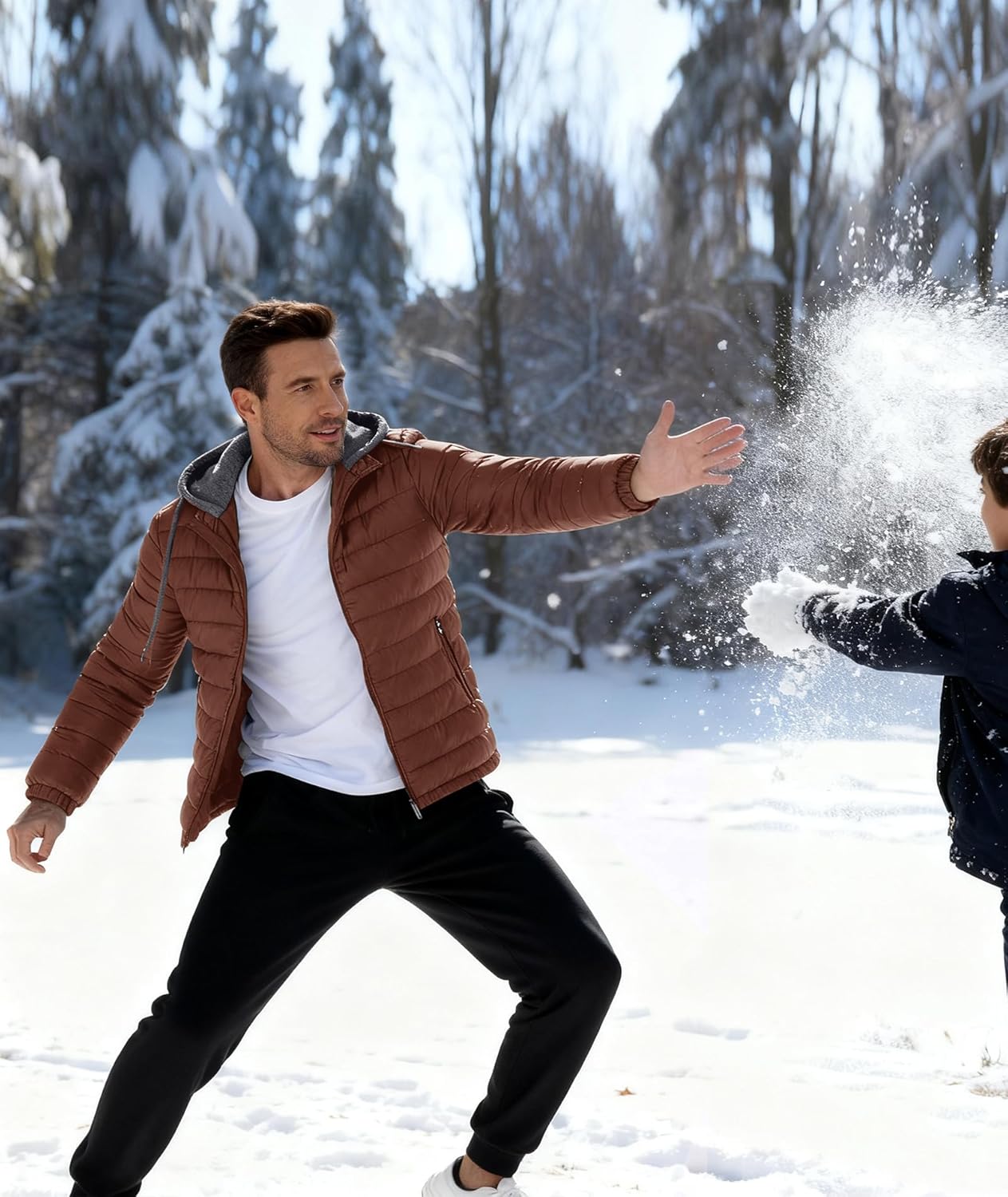 - VERSATILE STYLE & EASY CARE – A modern, regular-fit hooded winter jacket that pairs effortlessly with jeans, joggers, or sweatpants. Machine washable and available in multiple sizes, making it a practical gift for men.