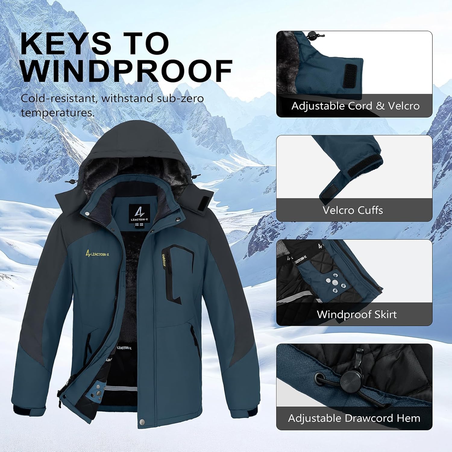 - 【HEAT-LOCKING & BREATHABLE】: This ski jacket features a professional 3-layer thermal structure: outer shell blocks wind, thickened cotton filling traps locks warmth, plush fleece lining adds extra insulation. Keeps you warm in 40℉ to -15℉, stays breathable to avoid activity-related stuffiness, and feels non-bulky—ideal for harsh winter winds.