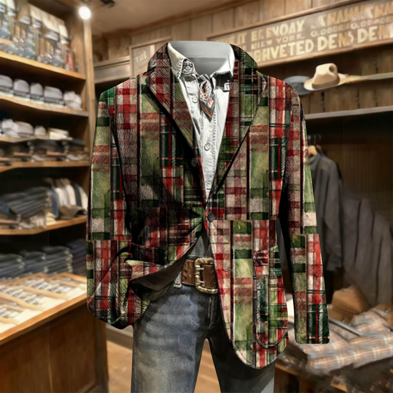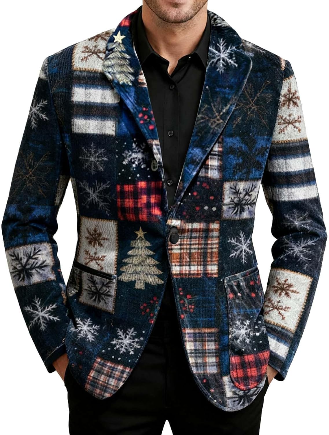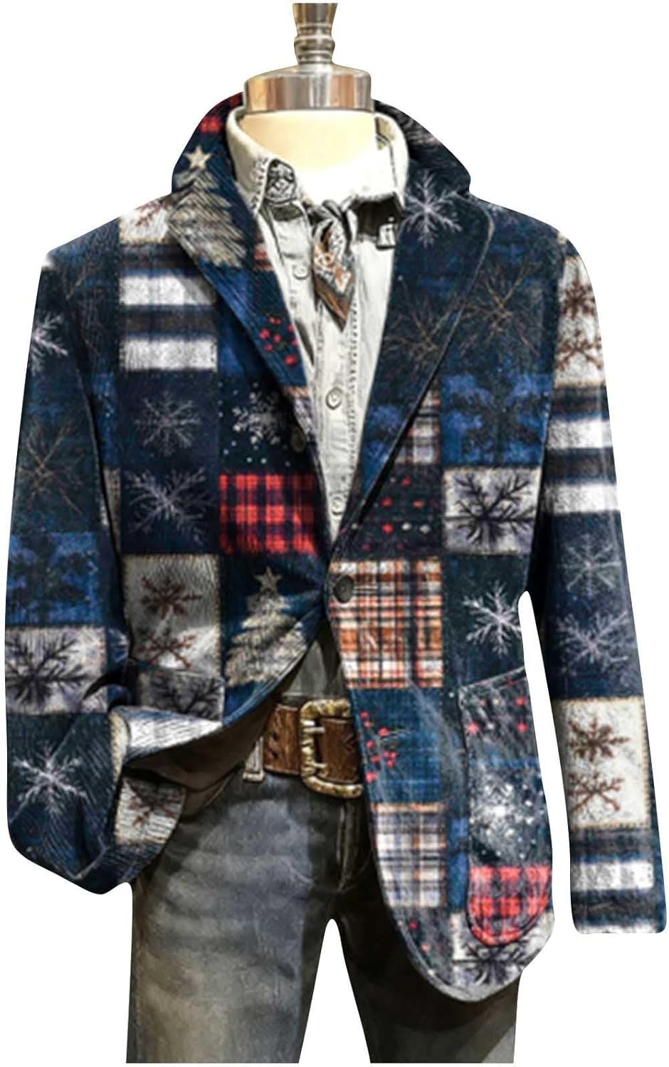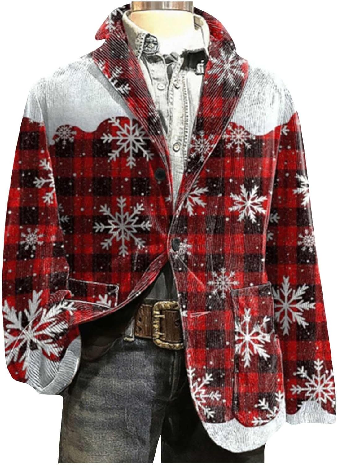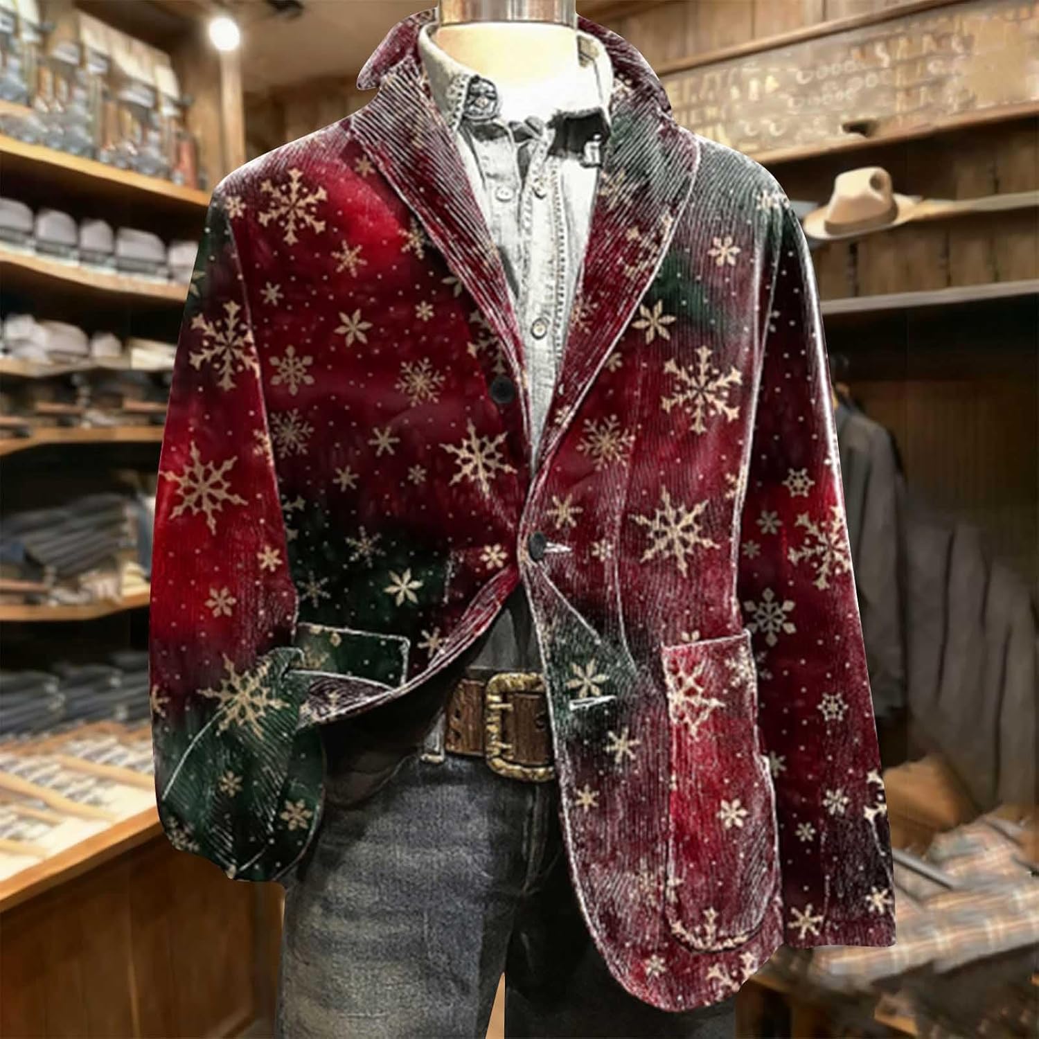 Men’s Christmas Blazer Vintage Holiday Corduroy Suit Jacket Slim Fit Fashion Casual Sport Coat Trendy Winter Colthes