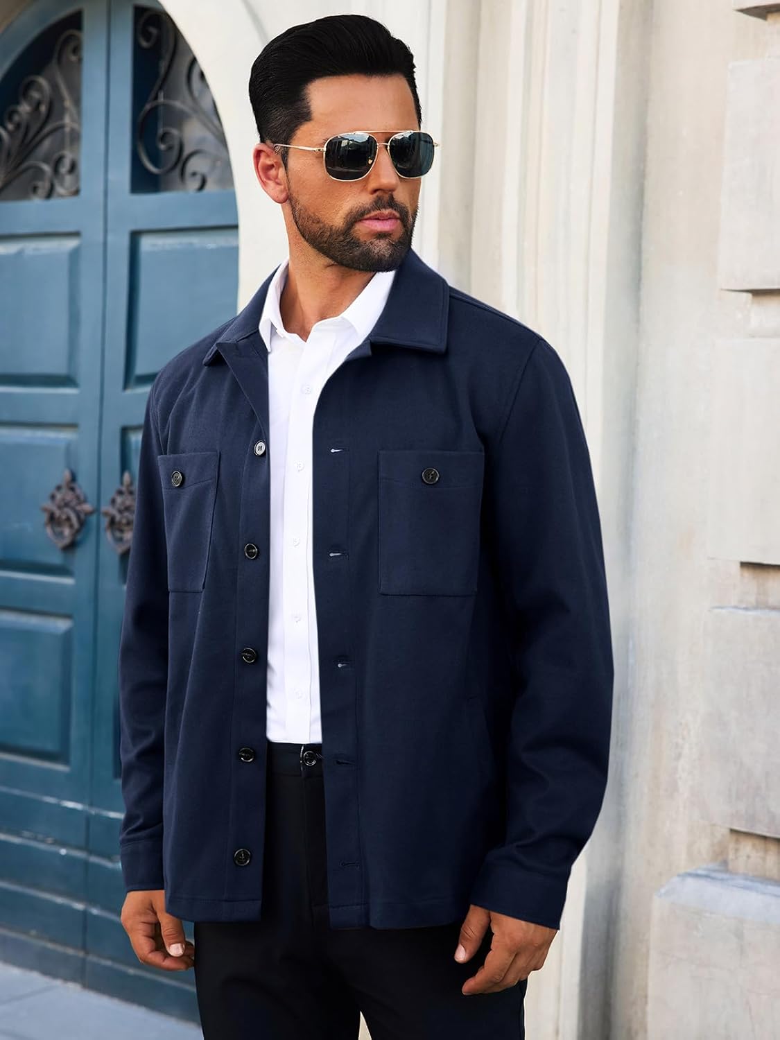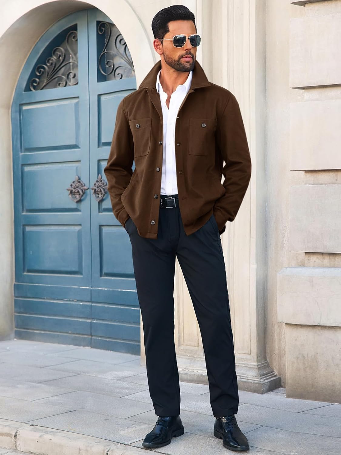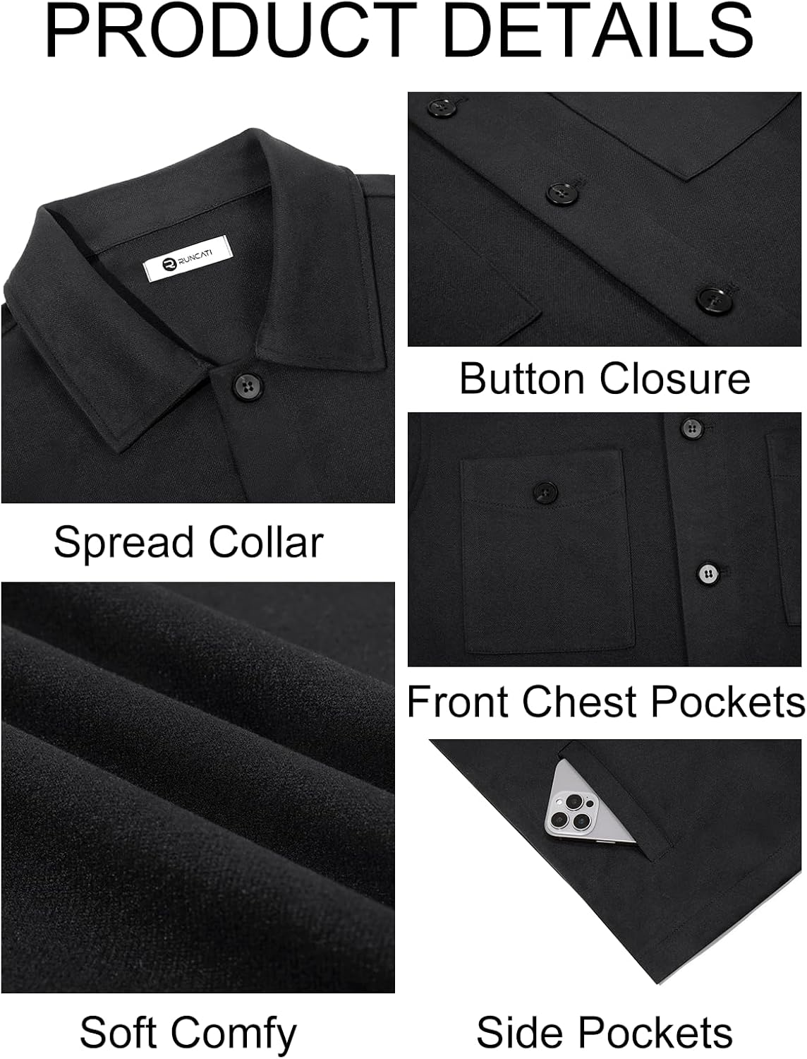 - Features: Casual work shirt jacket with spread collar, long sleeves provide extra coverage and warmth during cooler weather, button closure, Convenient chest pockets and side pockets for storing small essentials like keys, wallet, or phone. Versatile design that effortlessly transitions from casual to semi-formal occasions