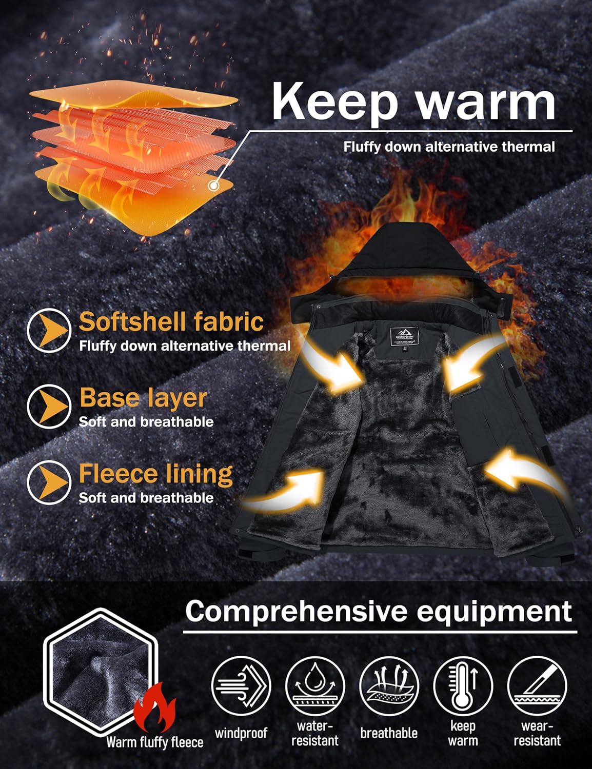 - Fleece Lined: Windproof Warm Jacket Coat With Thermal Fleece Lining to Keep You Warm in Cold Weather