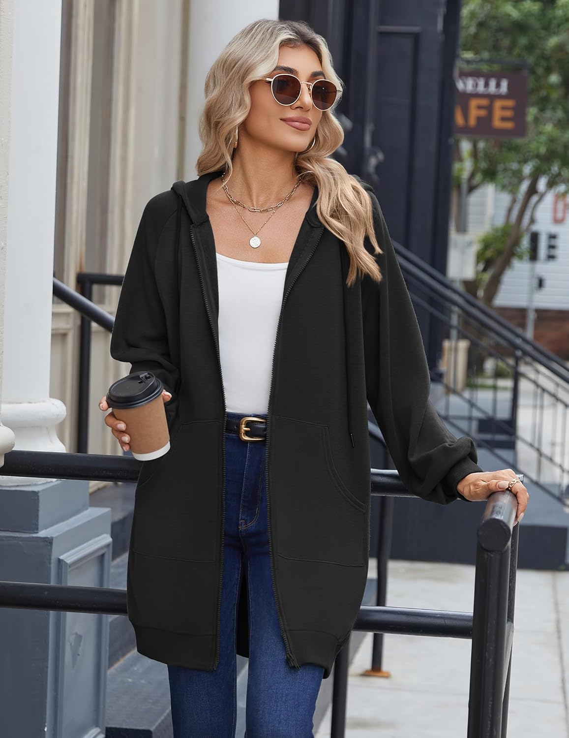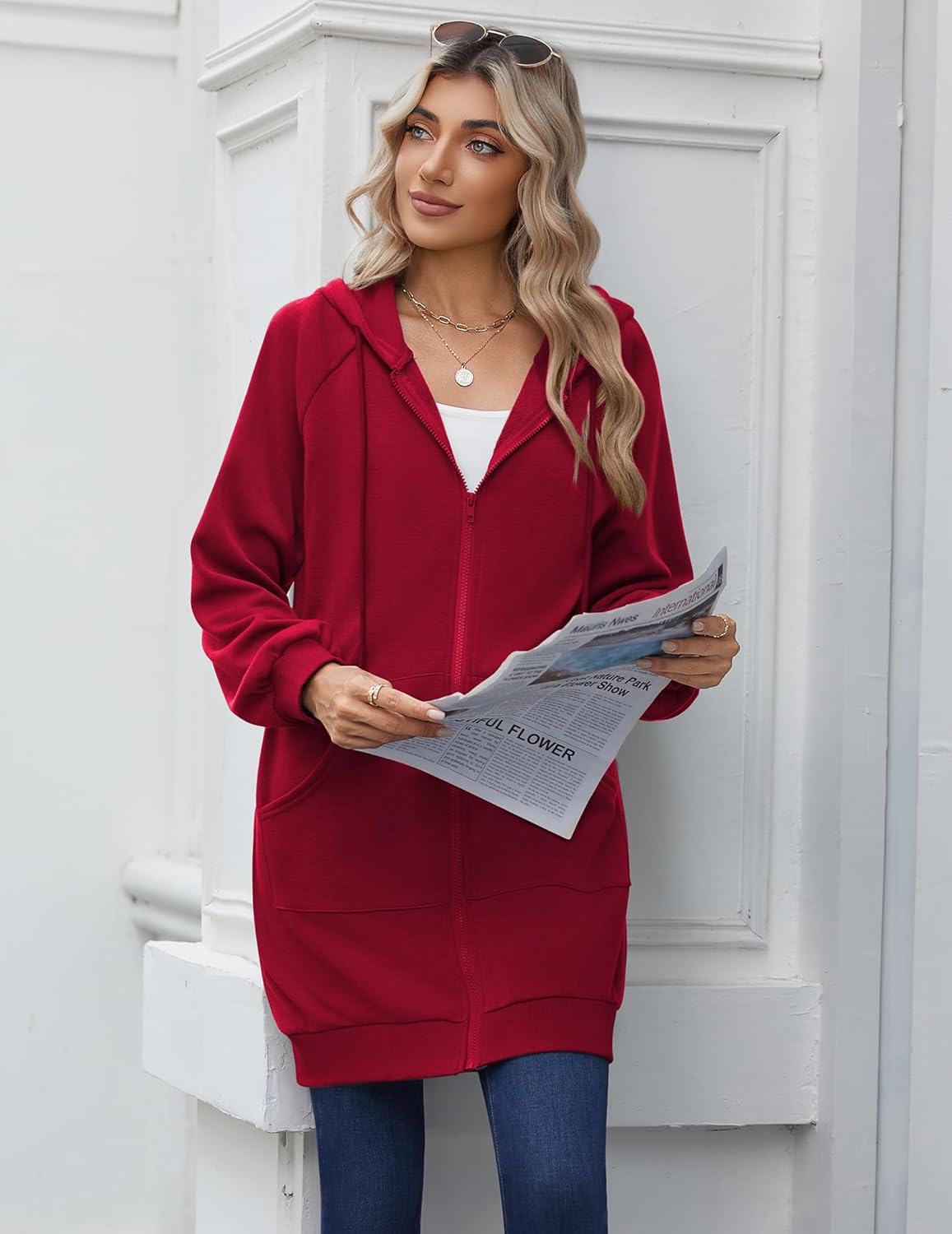 - 【Designs】: Above Knee length long hoodie/ long sweatshirt/ casual long sweatshirt/ long fleece tunic sweatshirt/ fleece zip-up women/ oversized zip-up hoodie / trendy long zippered sweatshirt/ long sweatshirt jacket/hoodie sweaters for women/ fleece/ big pockets/ drawstring/ full-zip closure, this women’s long hooded jacket can be worn in many ways, zipped up as a sweatshirt or as a fleece jacket.