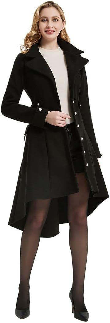 QZUnique Long Trench Pea Coat for Women – Wool Winter Trench Coat Goth Lapel Peacoat Outwear Thick Hood Pea Jacket Trenchcoat