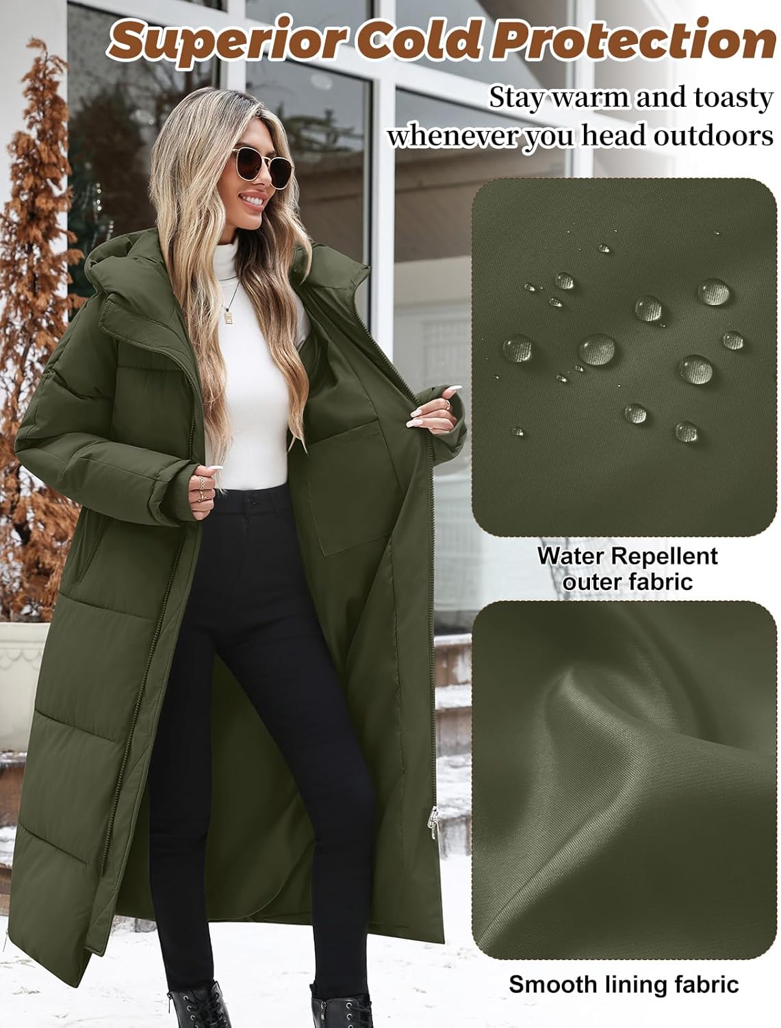 - Elegant Long-Length Silhouette: Featuring a sleek ankle-length design, this sophisticated long coat women offers full coverage for ultimate warmth. Available in versatile hues like black and army green, it’s a stylish long coats for women trendy choice that flatters any figure. The clean lines and solid colors make it easy to pair with various outfits for a polished look
