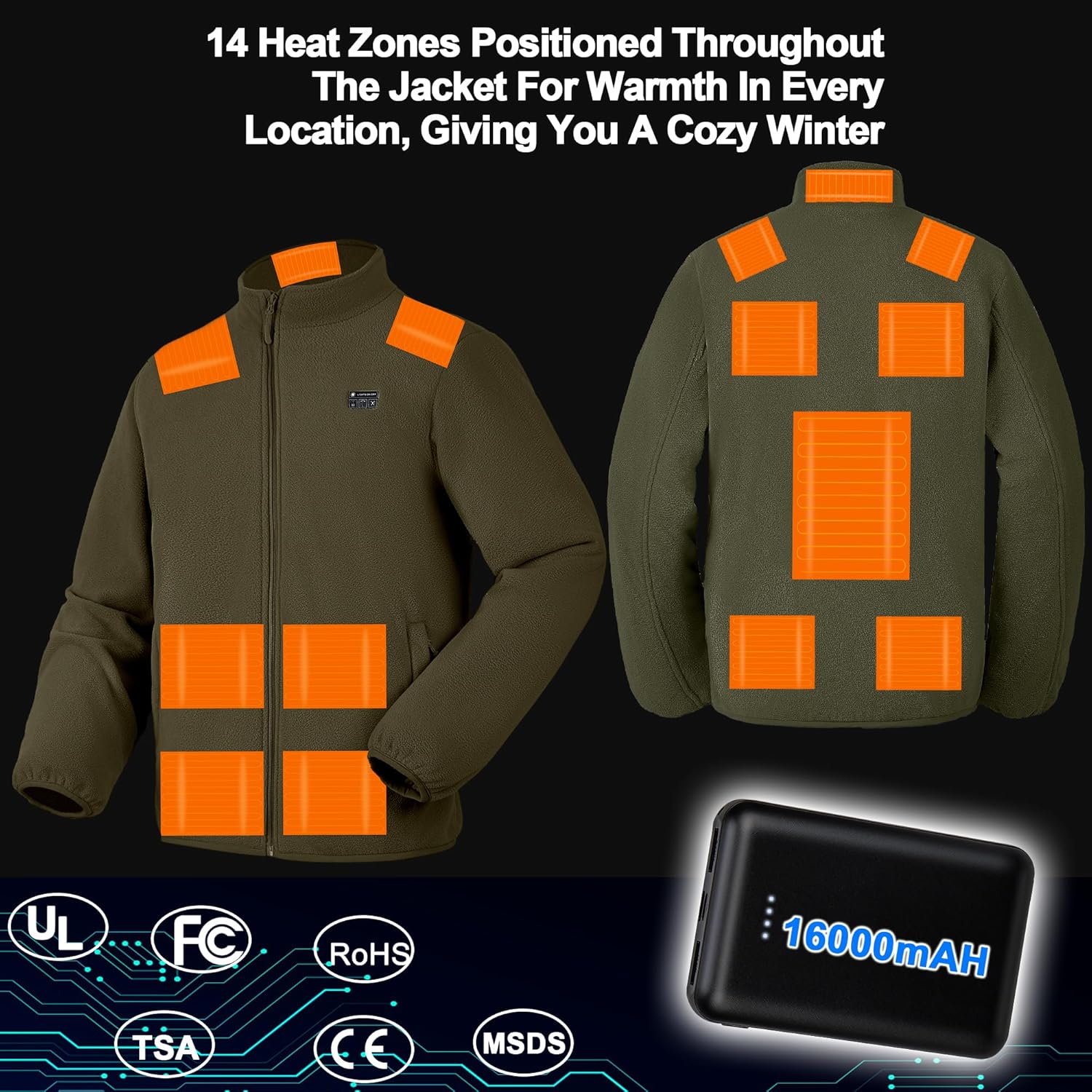 Panatude Heated Jackets for Men with Battery Pack Included(16000mAh) Polar Fleece Mens Heating Coat Hoodie for Winter