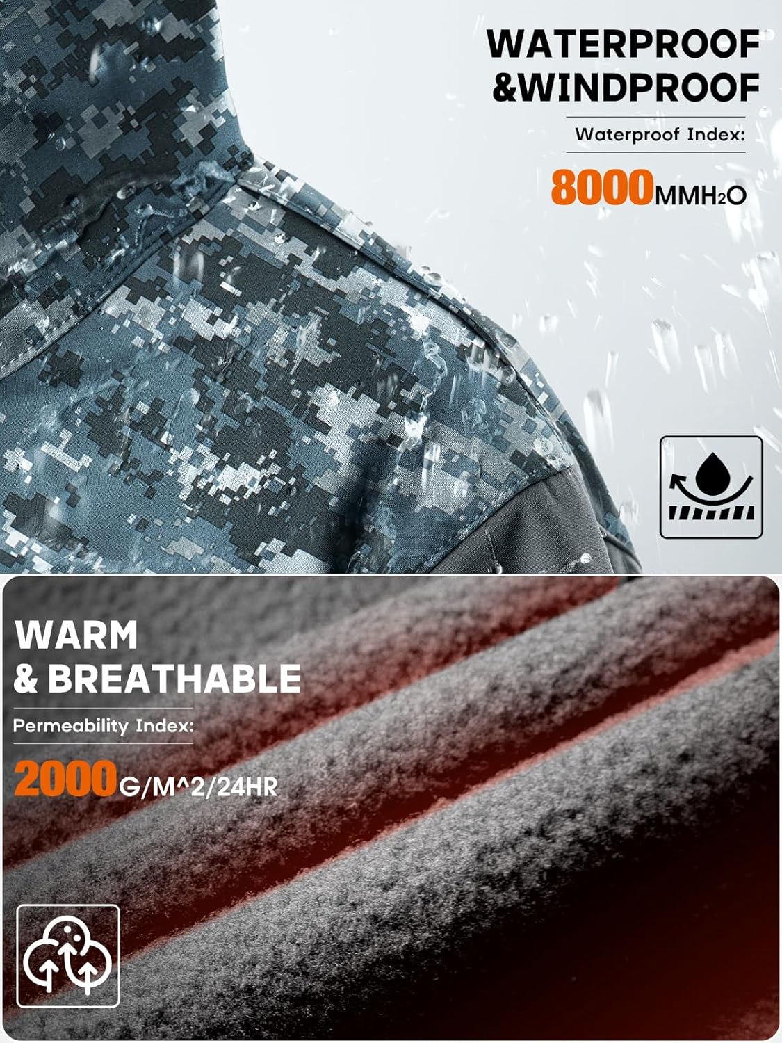 - KEEP WARM & COMFORT- Men’s Waterproof Softshell Jacket is made of 94% Polyester 6% Spandex and 100% Polyester Thermal 8000mm Fleece Liner. Scratch-resistant Polyester fabric and stretch spandex are especially suitable for outdoor activities with extreme flexibility and comfort. Designed with warmth and comfort in mind, this mens fleece lined jacket adopts a high-quality Polar Fleece Lining for breathing freely, a skin-friendly feel and superior moisture-wicking performance
