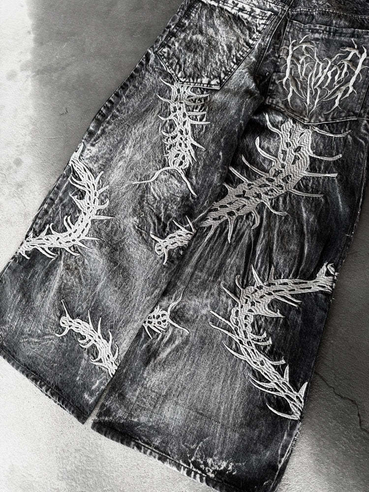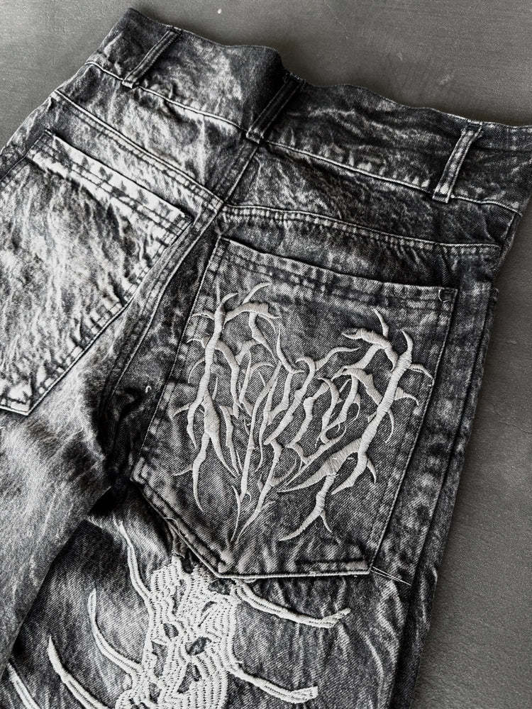 Embroidery: Front and back embroidery covering the entire leg + back pocket