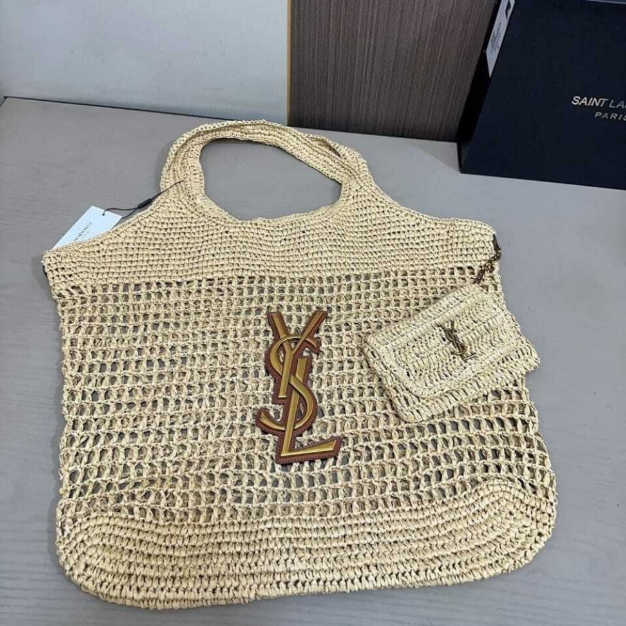 Replica 1:1 – Saint Laurent Icare In Raffia Naturel And Brown Gold 45Cm 772191GAAEK2063