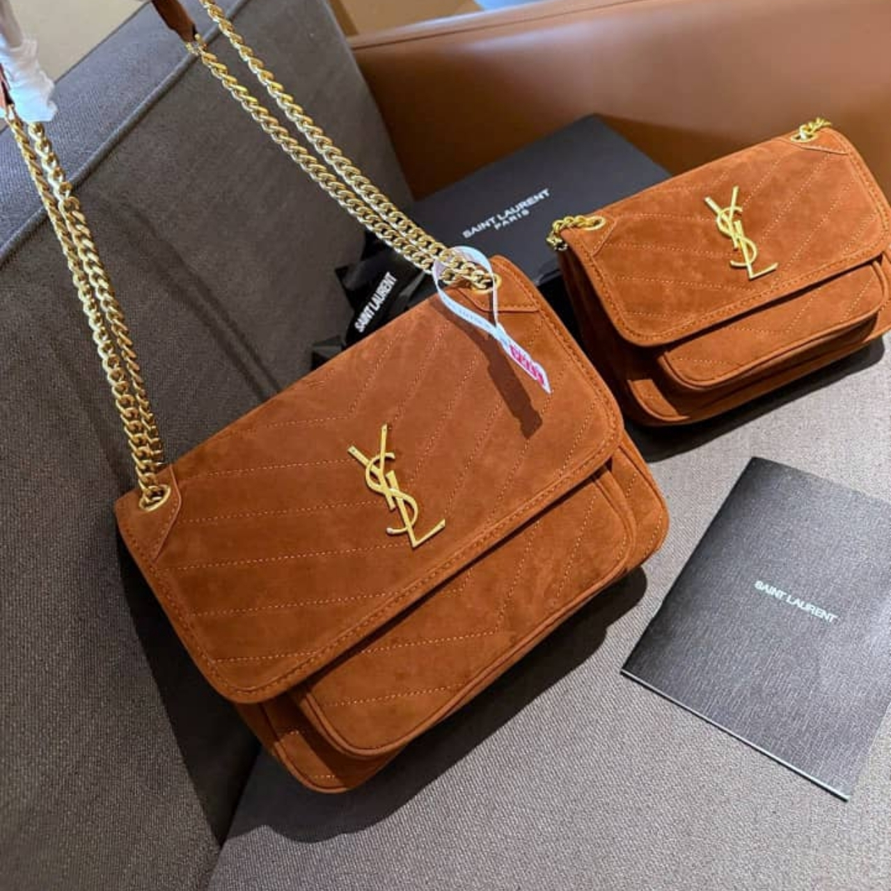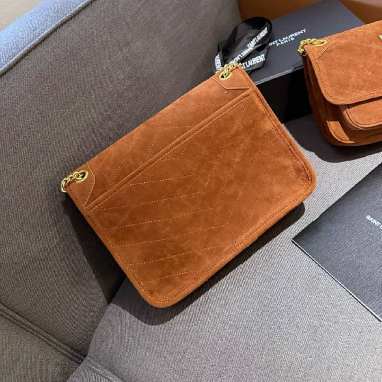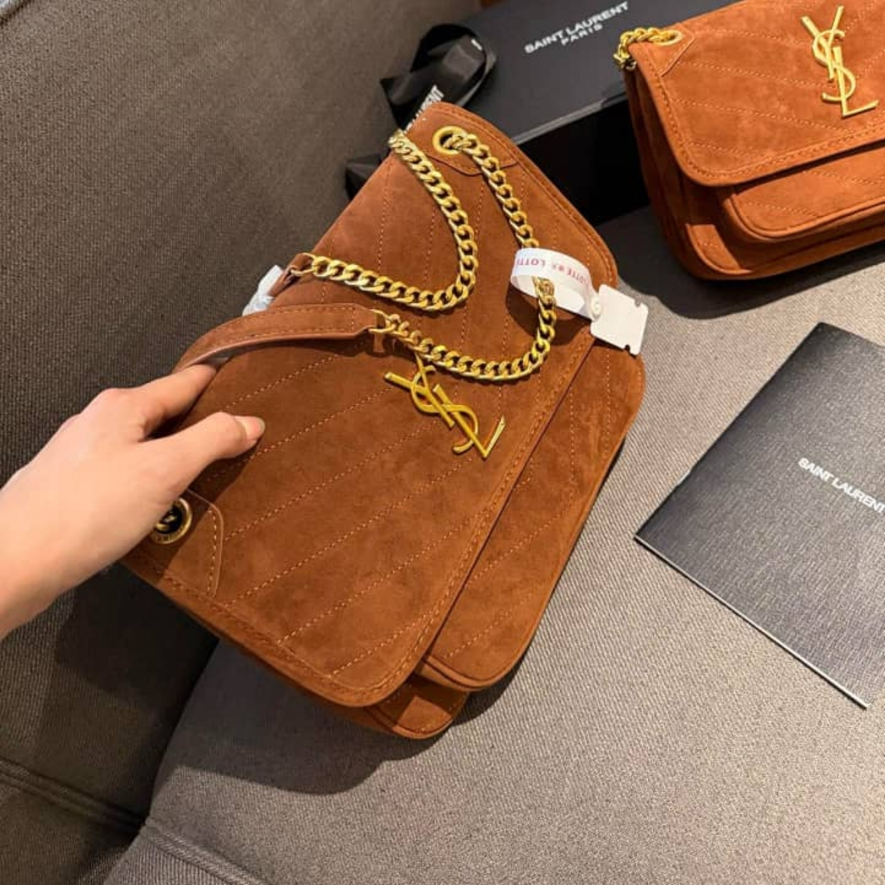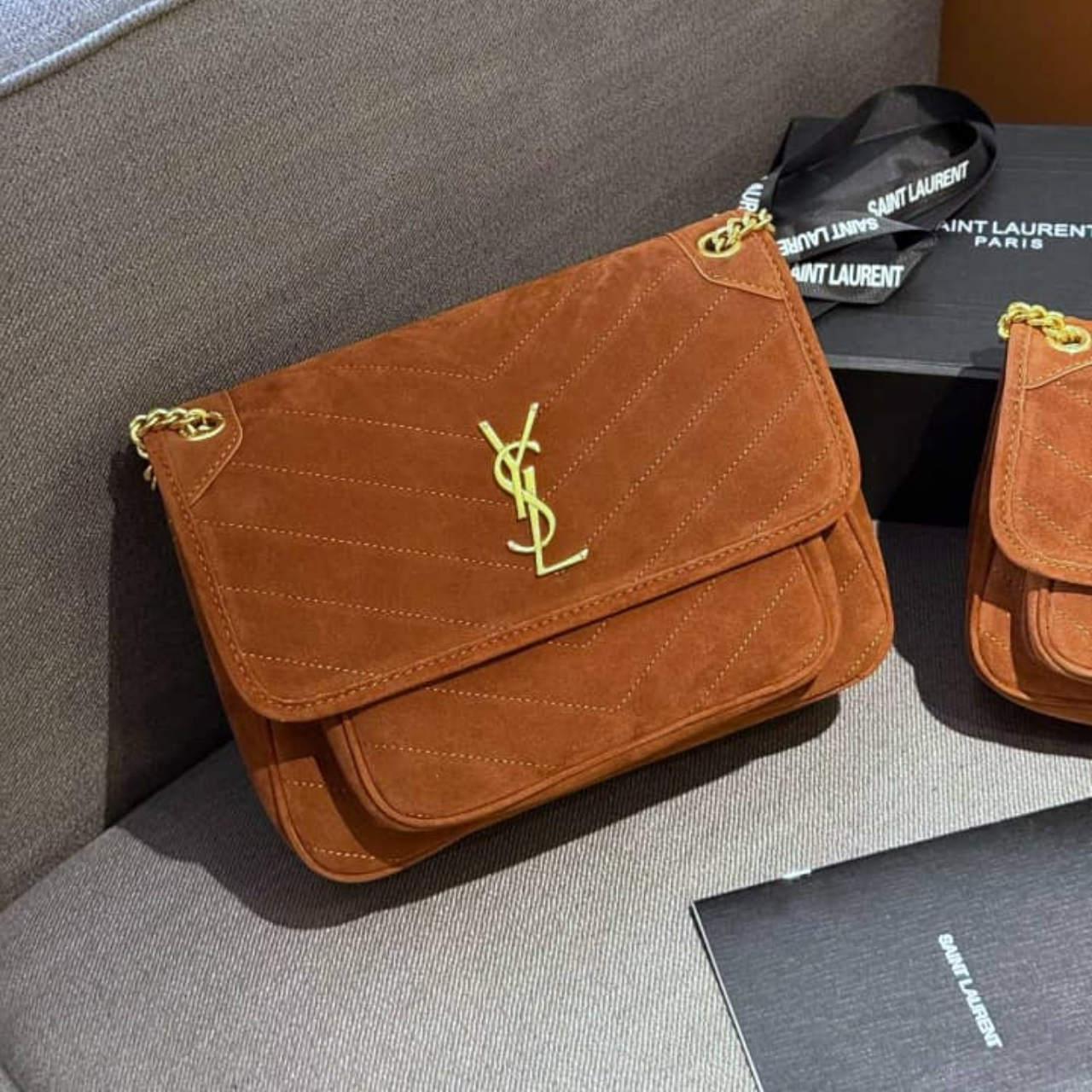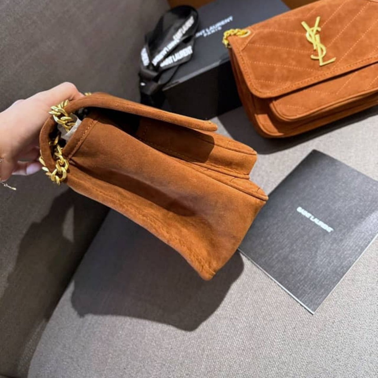 Saint Laurent Niki Baby Chain Bag In Suede Brown 28cm 6237483