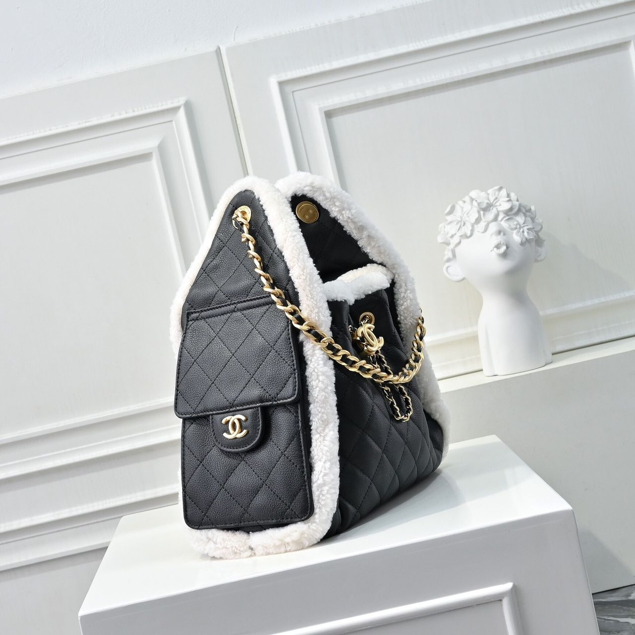 Super Vip 1:1 Chanel 25 Small Handbag Gold Tone Metal Black And White 30Cm AS5293 B22309 U4139