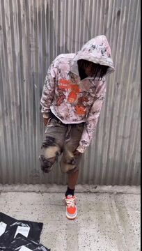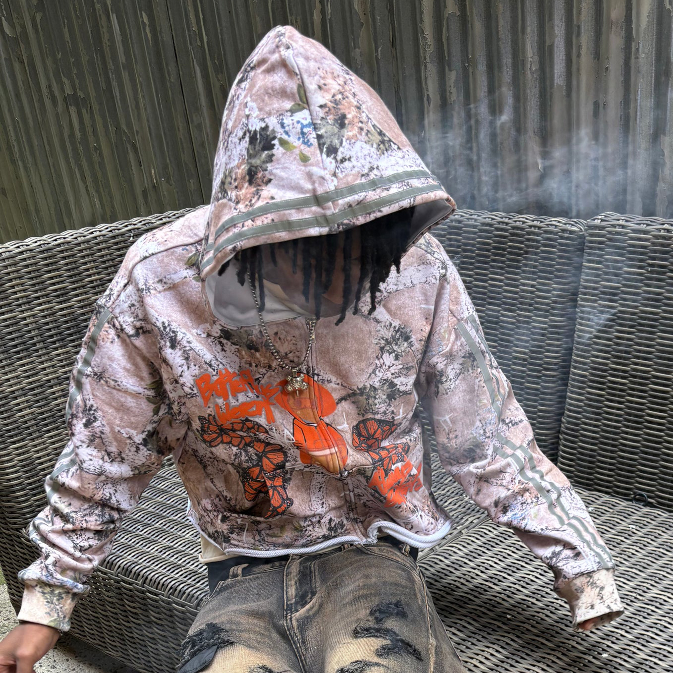 Vintage Cropped Camouflage Rolled Hem Hoodie